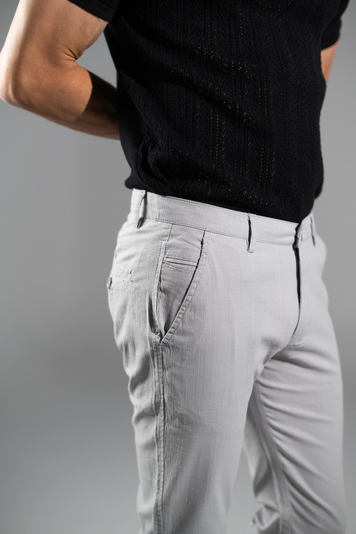 Textured Cotton Pants - Light Grey