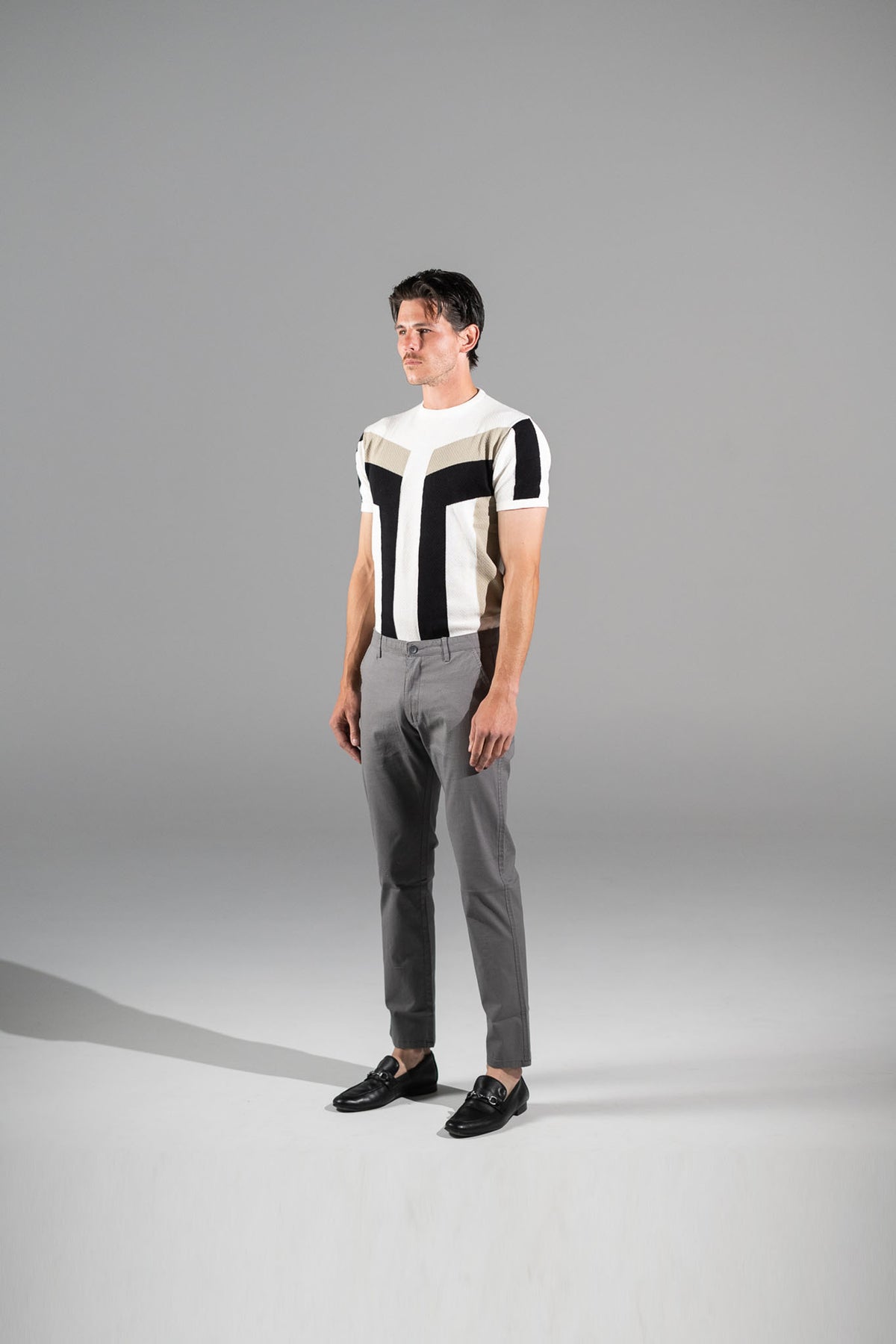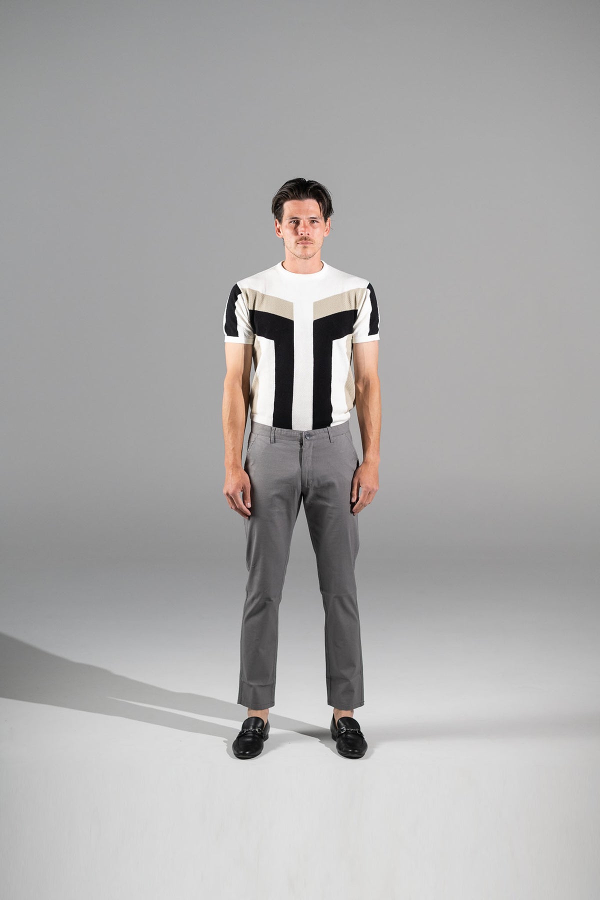 Crafted from a 98% cotton, 2% elastane blend, these pants offer the perfect balance of softness, structure, and stretch. The breathable fabric keeps you comfortable all day, while the textured pattern adds a subtle touch of style for a timeless, versatile look.