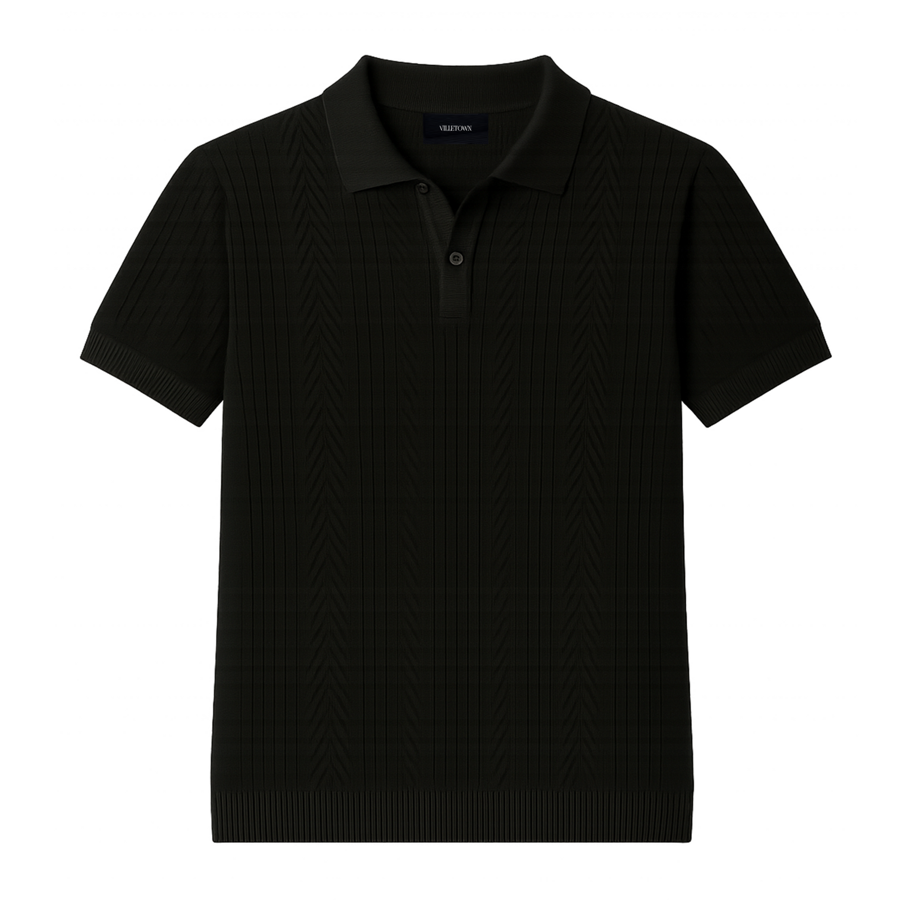 Jet Black Pointelle Knitted Cotton Polo